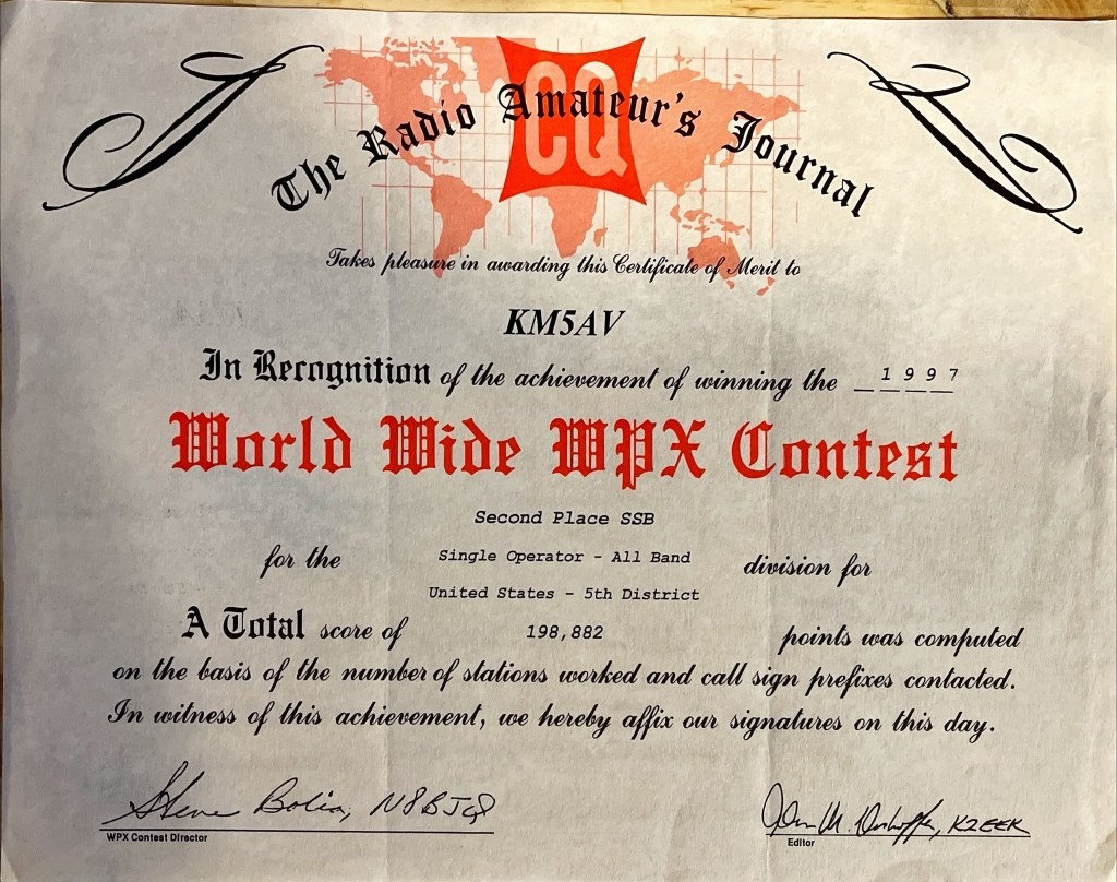 In my early years, I was drawn to contesting and DX’ing. Back then as it is today, these pursuits are the home of the serious CW ops. Code speeds are often in the 30-35 wpm range. Far above my meager 18 wpm. I did some contesting using SSB and was moderately successful. Here is an award from the CQWW DX SSB contest.