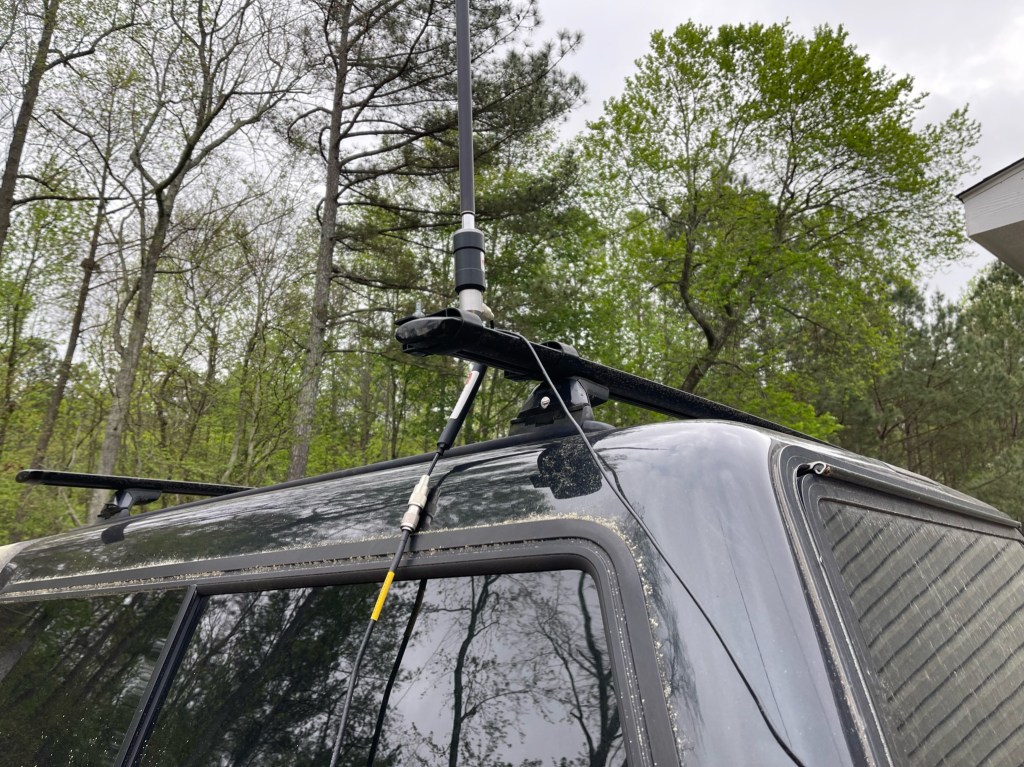 This is part two in my quest to make day activations more park (and park ranger) friendly. With day activations, you tend to be more out in the open and more readily observable. My idea was to reduce my visual signature. Part one was creating a desk for my radio so I could operate it from the cab. With this post, I am adding another modification to my Frankentenna. This antenna is set up to perform multiple roles in different configurations. The whole thing fits inside a regular Buddipole bag and stays with the truck. For this installation, I added a mount to my camper top’s cargo bars and made a ground wire attached to the truck bed. I had most of the parts on hand and spent about $10 for a piece of steel stock.