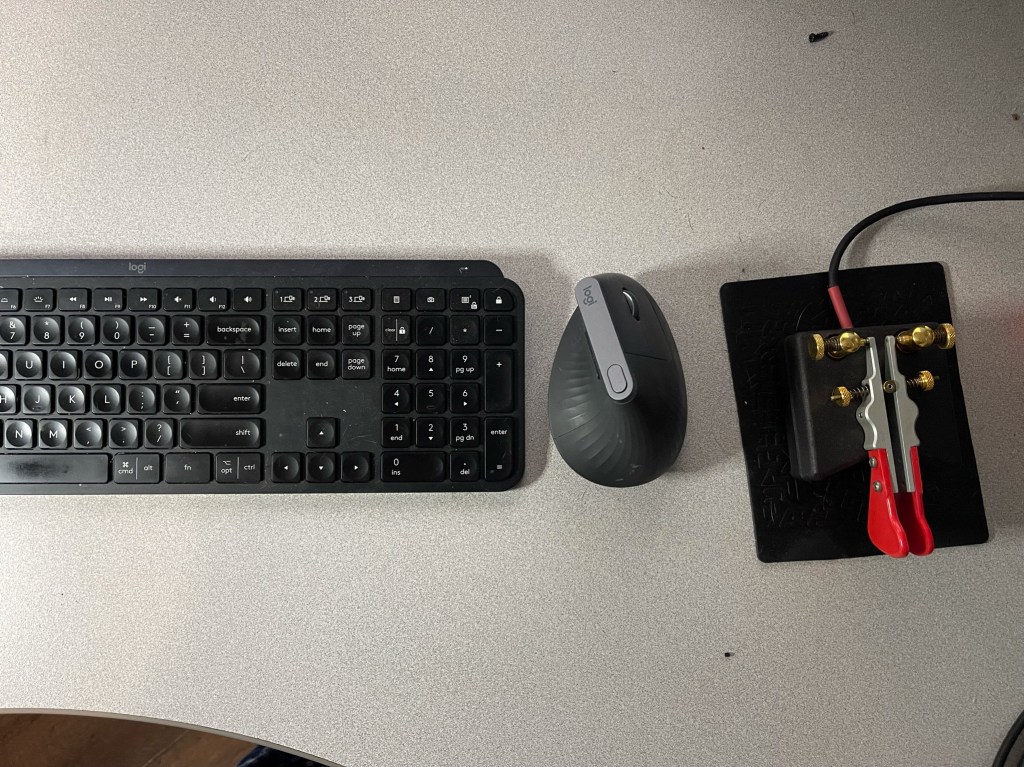 You can run the CW machine in several different configurations. At the minimum. it needs a paddle/key and a PS2 compatible keypad. Yep, it uses a PS2 port. Basically you enter data with the paddle and commands with the keypad. You can also replace the keypad with a keyboard. This requires a PS2 compatible keyboard (Logitech still makes one the K100). This works well as you can now run the machine like a mill. You type and it sends CW. If you get a keyboard, make sure you get one with a keypad. the machine recognizes individual key strokes, the 1 on the keyboard is not the same as the 1 on the keypad for example. For those whose fingers get stiff in the winter time, this will reduce your errors. Another way to run this is with a computer using the computers keyboard and key pad. And finally you can run it from a Surface Go2 using its keybaord and attach a keypad to the machine.