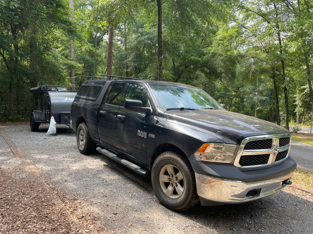 Radios for this weekend were going to be my new to me Elecraft K3/10 and my Penntek TR-35 with an Elecraft T1 tuner for SOTA. It was going to be a nice QRP weekend. Everything was going well until I arrived at my campsite. I got the trailer set up and when I reached for the cooler to start lunch, the cooler wasn’t working. Sigh, I had to troubleshoot the cooler before I could do anything else. I found out it blew a fuse and I didn’t have any spares. Luckily, the stereo circuit uses the same size fuse so I swapped the bad fuse for a good one and all is well. Note to self: Buy spare fuses.