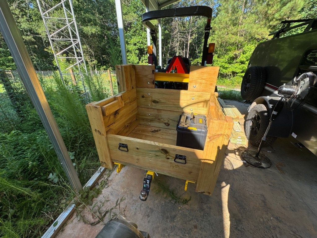 Working on the farm. I have been busy on my property. I have 6 acres to take care of and there is always something to do. Right now I have to start getting firewood ready for winter. That means dragging downed trees to the process area, bucking, splitting and stacking. I have a John Deere 3025 tractor to help me out. A problem I was running into was how do I get my gear out to where I am working. The front end loader is okay to carry things until you need it for something else. Besides the steel of the bucket is not good for a chainsaw blade. In the past I would sometimes use my wife’s UTV. That has it’s own set of problems namely, she uses it for her stuff and it stays full. So I decided to build a cargo box for the 3 point hitch on my tractor. I got a carry-all from King Cutter which allows me to use my iMatch quick hitch.