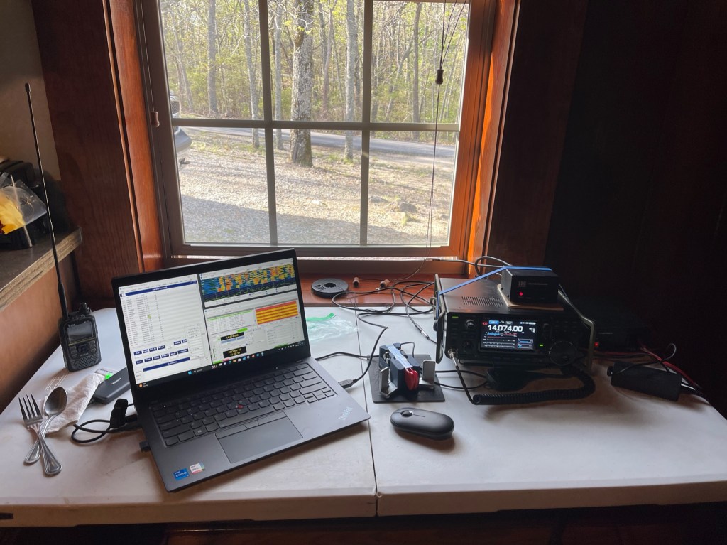 Gear for the trip was my IC-7300 and LDG tuner. The antenna was a Chameleon 17’ stainless steel whip and a Chameleon CHA Hybrid Micro Balun sitting on top of a carbon fiber tripod. Counterpoise was a Chameleon wire with about 20-22’ used. Since this was a shoot and scoot trip I used FT8 with my Lenovo T14 Thinkpad. I brought a 100 amp/hr LiPo battery for the radio with a Bioenno BPP-160 for the laptop. I ran the radio from the backseat and the laptop on the center console from the drivers seat. Setup and teardown only took a few minutes. I collapsed the antenna and stuck it in the back seat when I was done. Slam, Bam, Thankyou Ma’am.