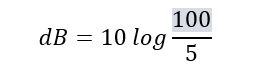 Where Power P1 is the power you wish to evaluate and reference power P2 is your starting power. Let’s take going from 5 watts to 10 watts. The equation would look like this: