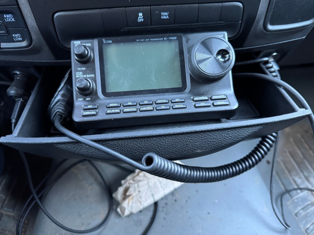 Last year I installed an IC-7100 in my truck. You can see the installation details here IC-7100 Install. The installation went pretty smoothly and I have used the radio on VHF and HF. The only fault I could find with the installation was how I mounted the control head. I used one of those Lido cup holder mounts. No matter how hard I tightened everything down, they still worked loose leaving the control head to wobble around.